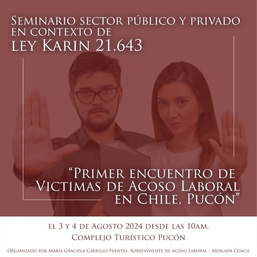 Hablemos de la entrada en vigencia administrativa de la Ley Karin y de como se gestó el ” Primer Encuentro de Víctimas de Acoso Laboral en Chile,Pucón . Todos los detalles de inscripción y gratuidad. Mucho que decir y tanto por escuchar!!!!!!, Un sueño hecho realidad …gracias a todos quienes han auspiciado para este hermoso evento.