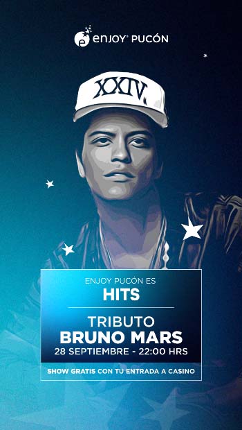 Otra noche de música y baile en septiembre es la que trae el tributo a este gran exponente del soul y el pop, éxitos como Locked Out Of Heaven, Count on Me, The Lazy Song nos harán cantar junto a la voz incomparable de Bruno Mars, desde el escenario del Bar Blend en Enjoy Pucón.