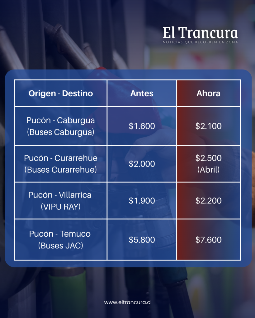 Tras la histórica alza en el precio de combustibles, subieron los pasajes de buses rurales e interurbanos que salen desde Pucón.